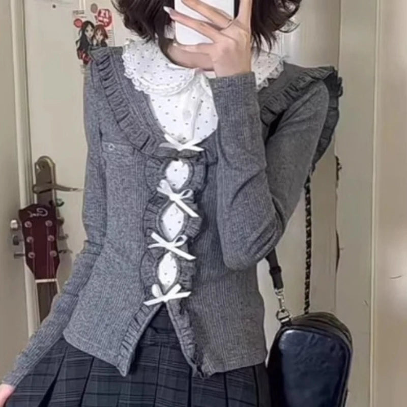 Japanese Sweet Preppy Style 2 Piece Sets Women Fake Two Piece Tops + Pleated Skirt New Fashion JK Slim Retro Outfits Spring 2026